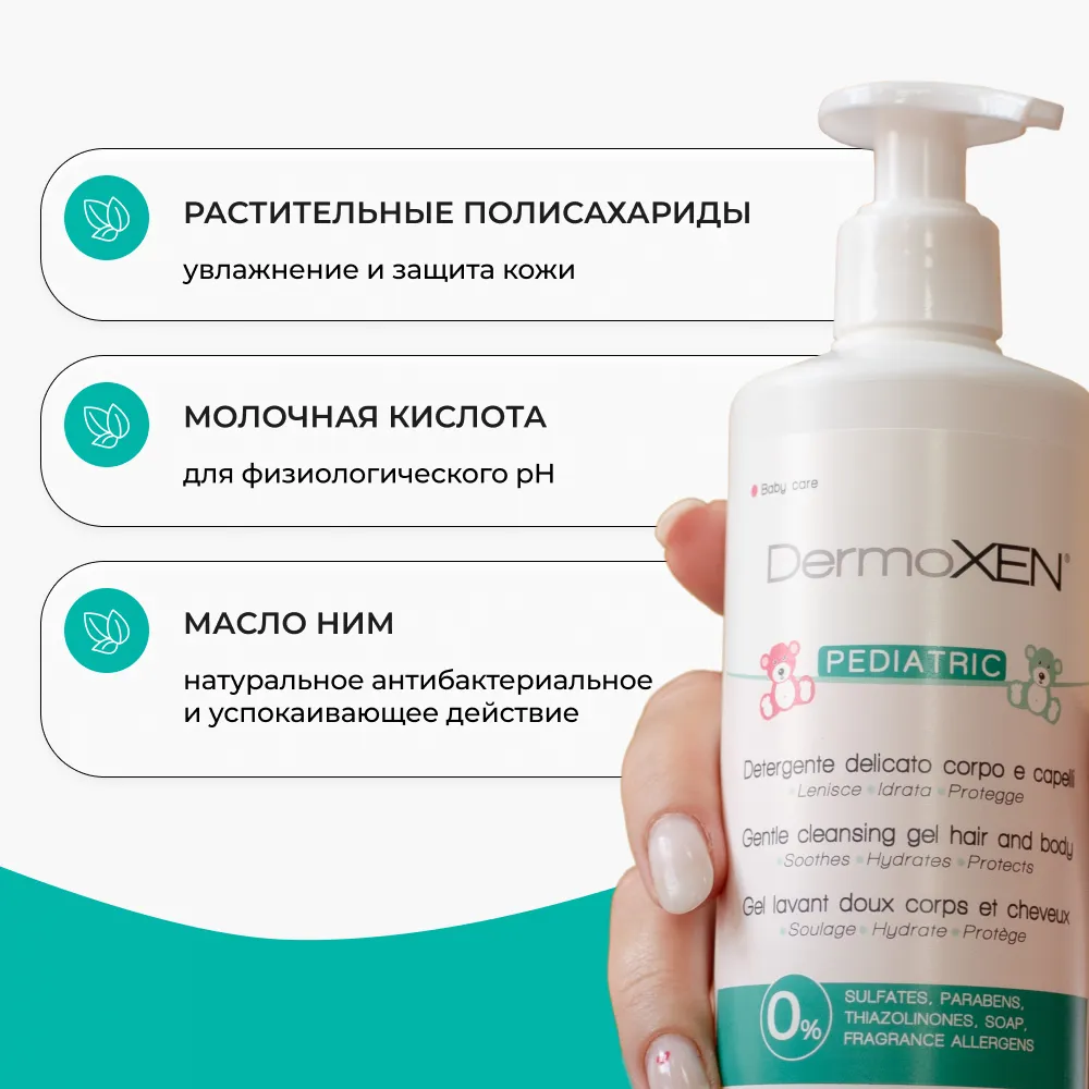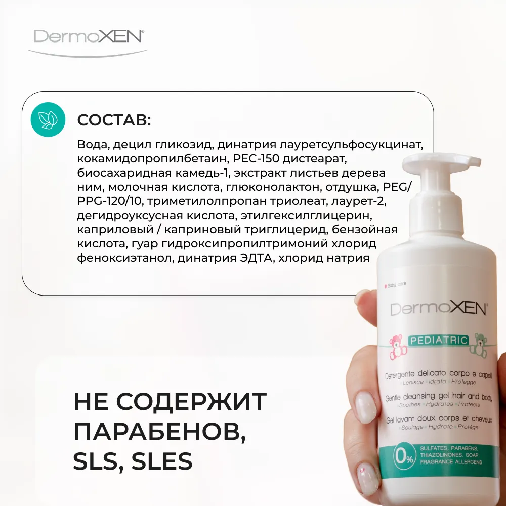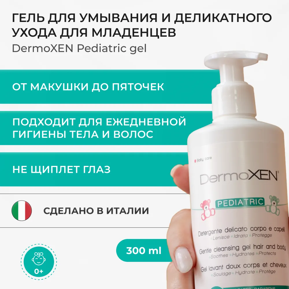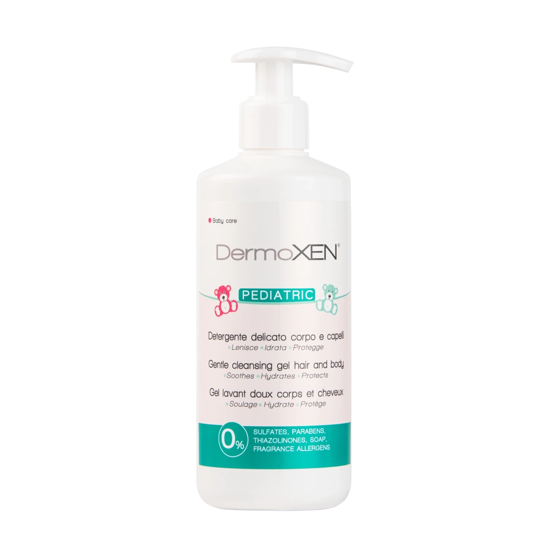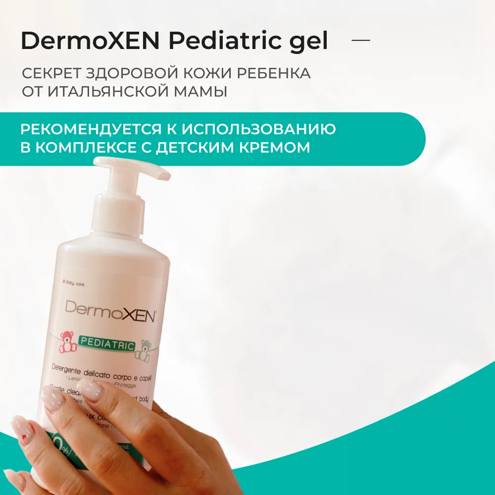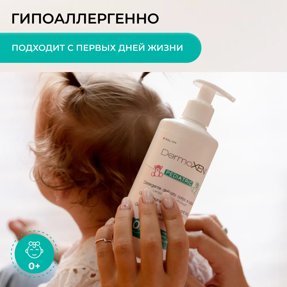 DermoXEN Pediatric Gel – мягкое очищающее средство для ежедневной гигиены тела и волос малышей с первых дней жизни.