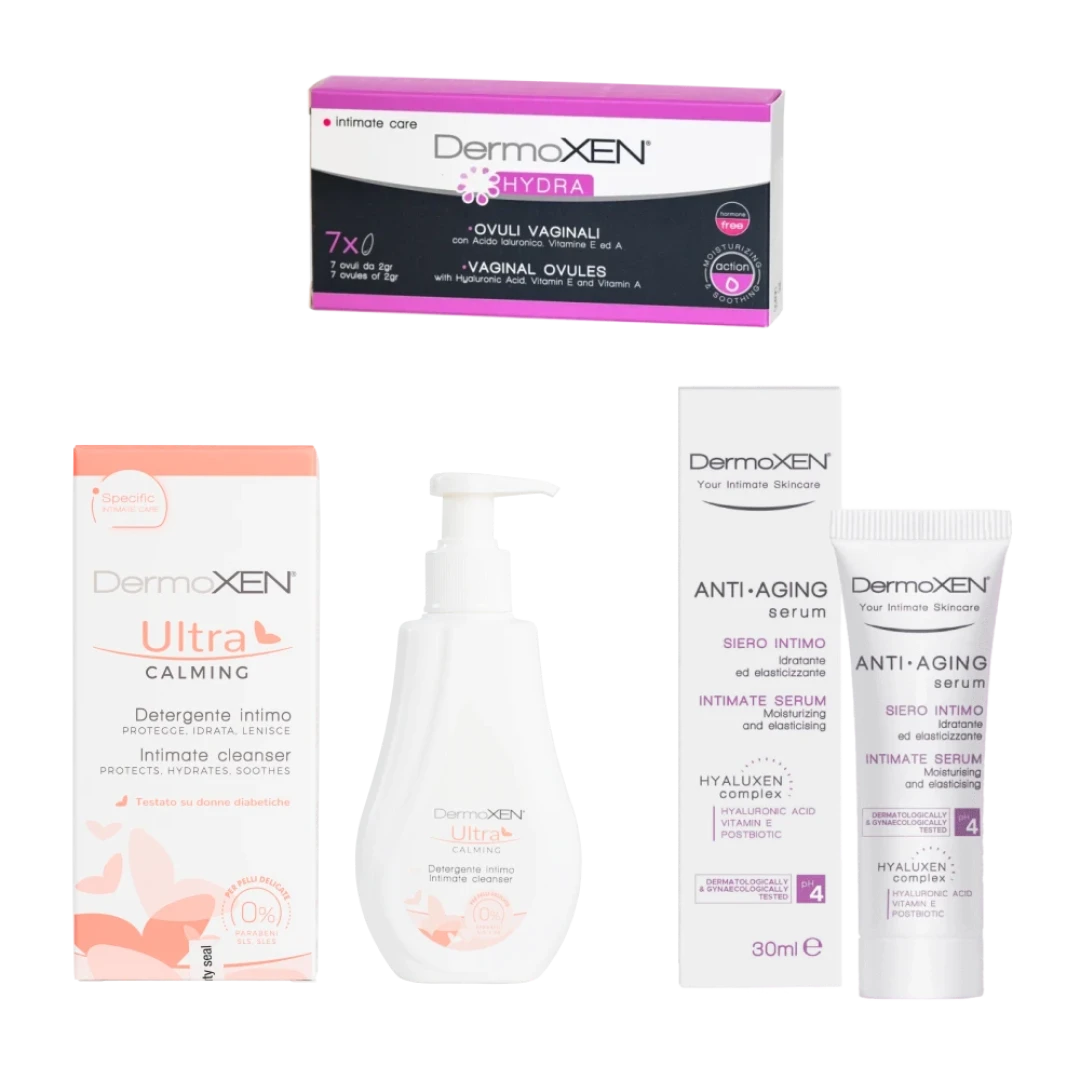 • Свечи DermoXEN Hydra - для эффективного решения проблемы вульвовагинальной сухости (атрофические вагиниты, диспаурения, послеродовой период, после радио-химио терапии). Свечи DermoXEN Hydra обладают тройным действием: 1) УВЛАЖНЕНИЕ, гиалуроновая кислота входящая в состав обладает прекрасными обволакивающими и увлажняющими свойствами.; 2) ЗАЩИТА, полисахарид алоэ вера, витамине Е, гиалуроновая кислота, обладают противовоспалительным и иммуносимулирующим действием; 3) ВОССТАНОВЛЕНИЕ. витамины А и Е обладают антиоксидантным и регенерирующим. Благодаря комплексному действию свечей прекрасно решают проблему вагинальной сухости, увеличивают количество естественной смазки, улучшают эластичность вагинальных эпителиев.