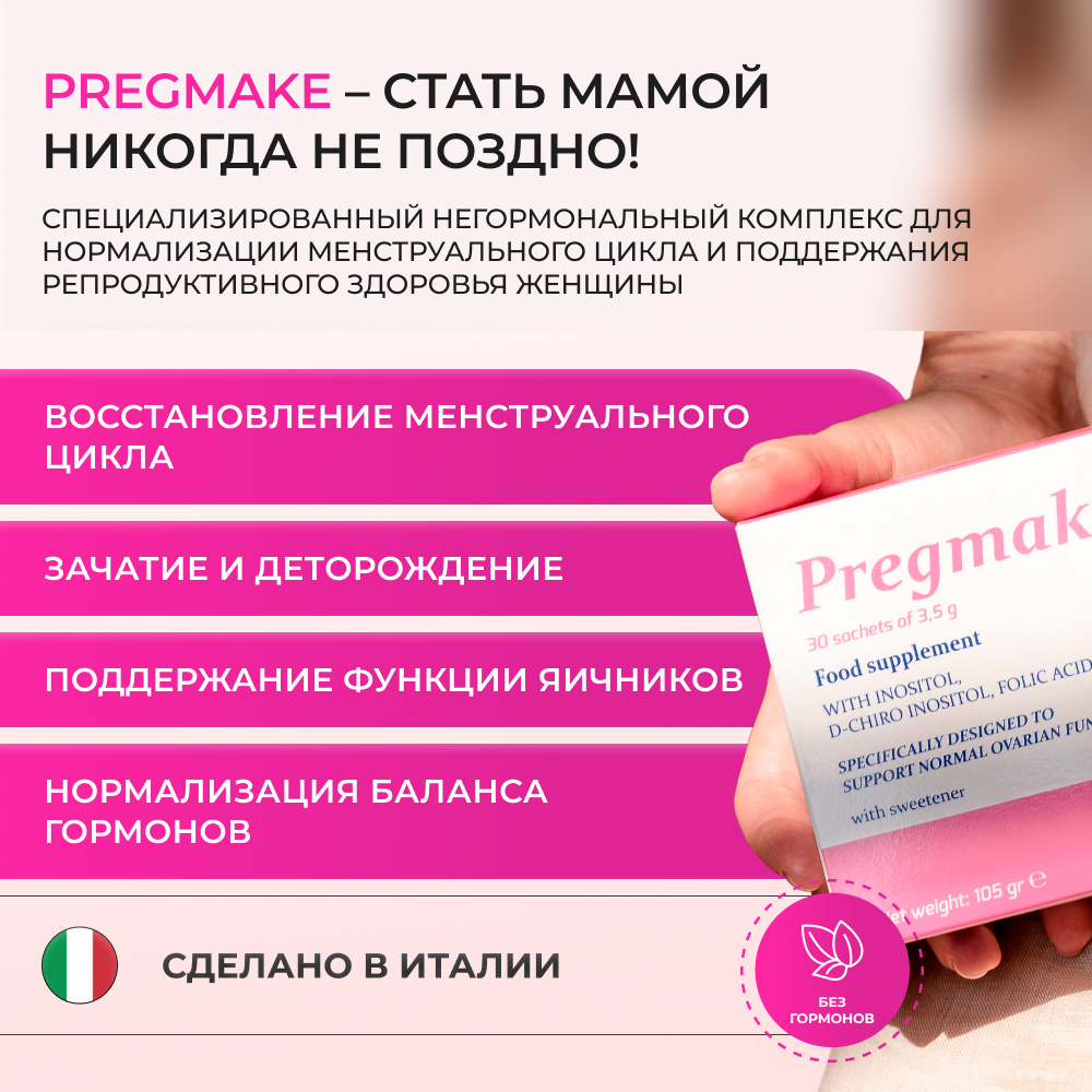 Pregmake — это негормональный комплекс, который восстанавливает природные процессы, нормализует цикл и помогает подготовиться к долгожданной беременности.