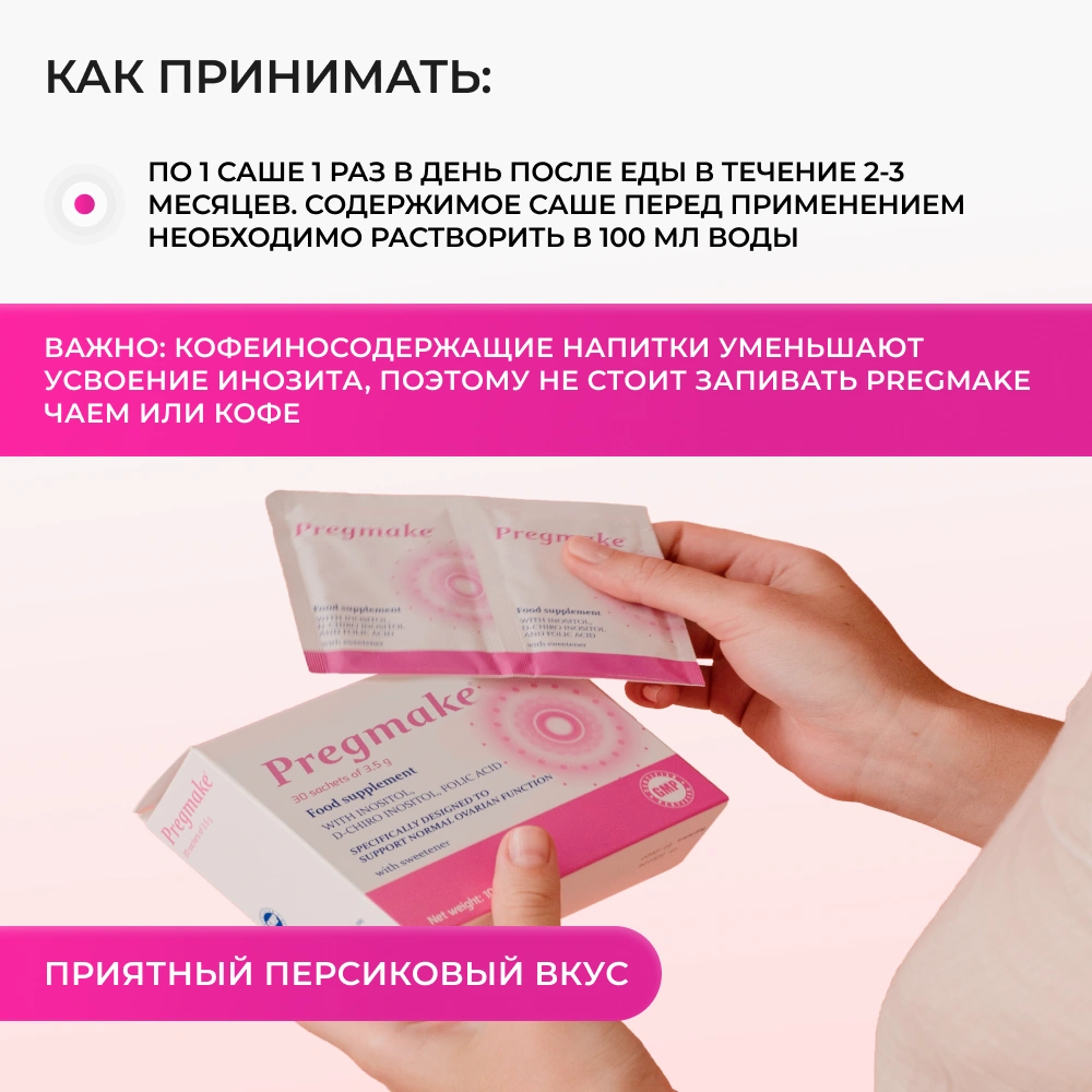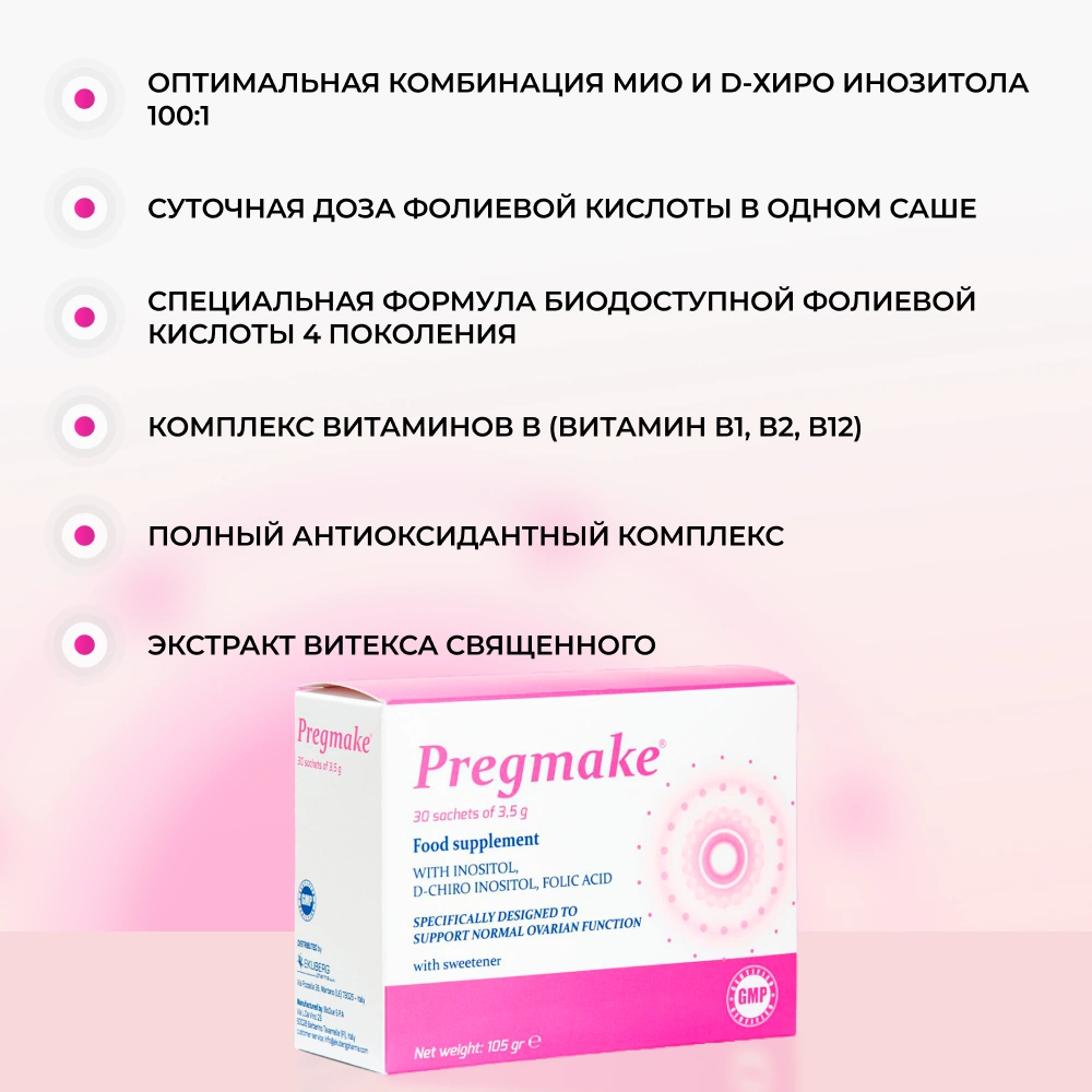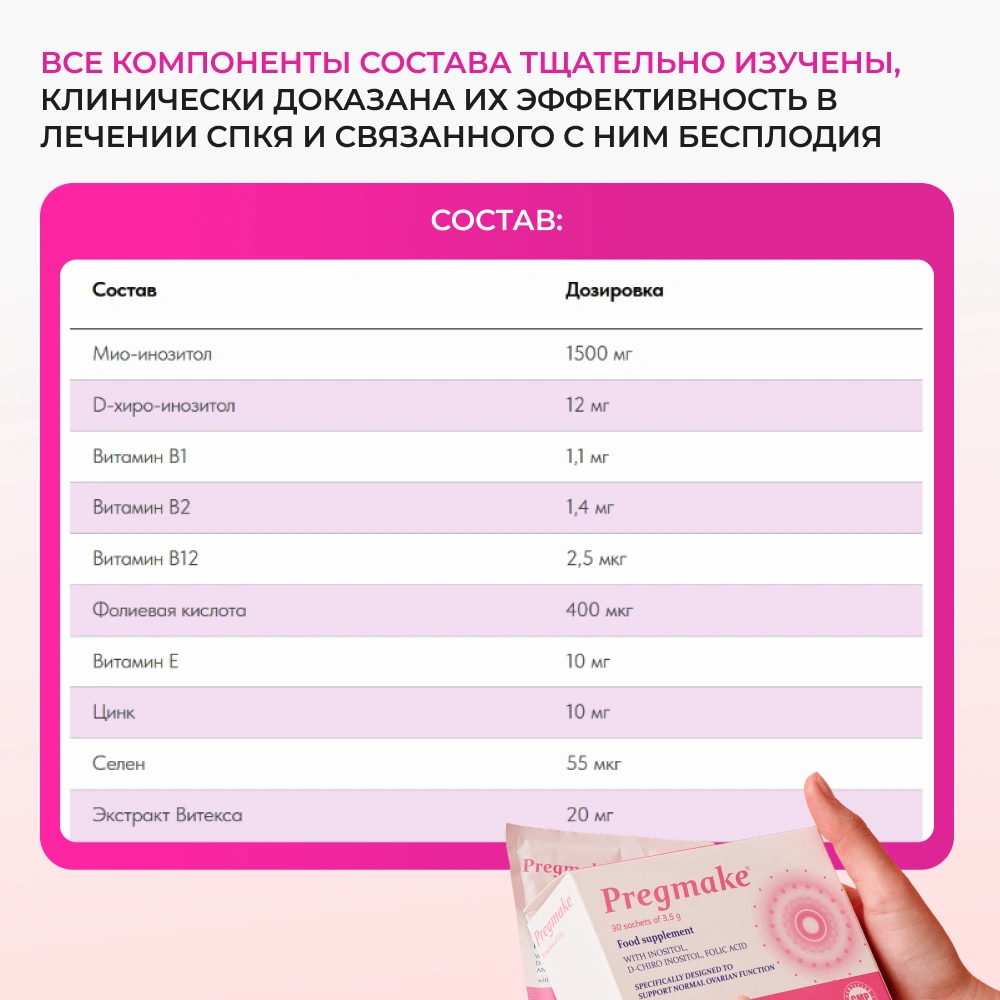 - Компоненты Pregmake действуют синергично! Инновационный состав, направленный на решение проблем с фертильностью